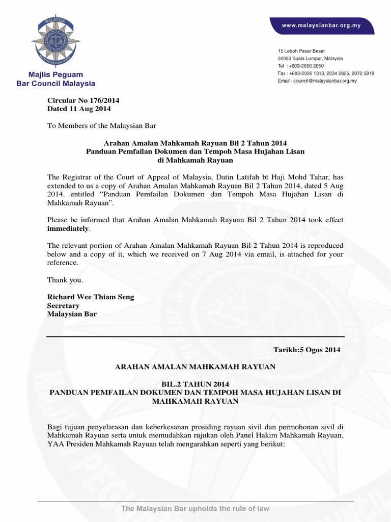 Arahan Amalan Mahkamah Rayuan Bil 1 Tahun 2008 Pdf Pdf Document