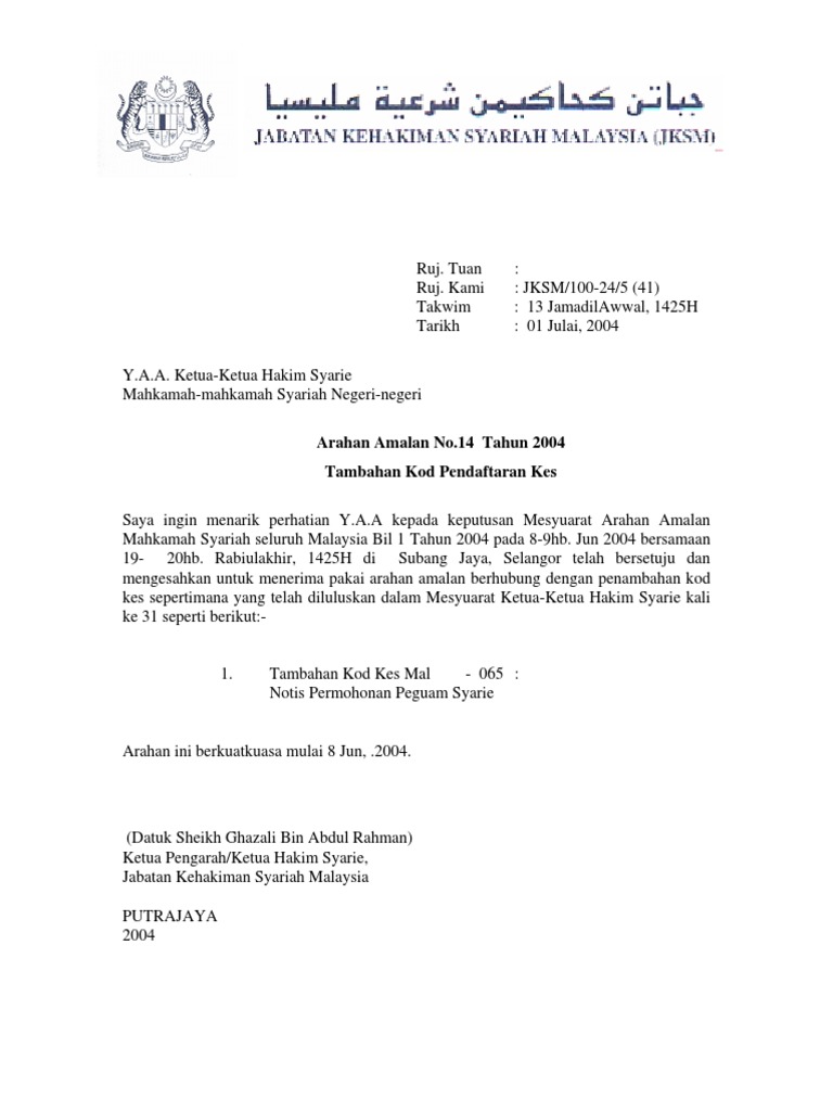 Arahan Amalan Pelaksanaannya Di Mahkamah Syariah Pdf Document