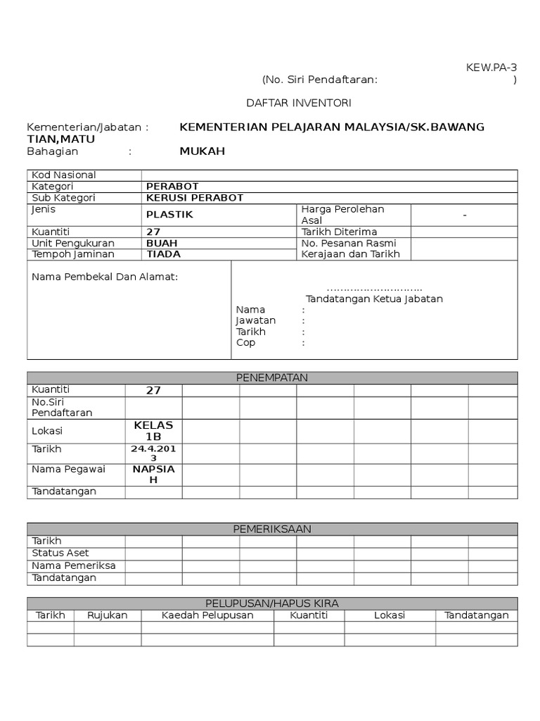 Kew Pa 3 Daftar Aset Alih Yang Bernilai Rendah