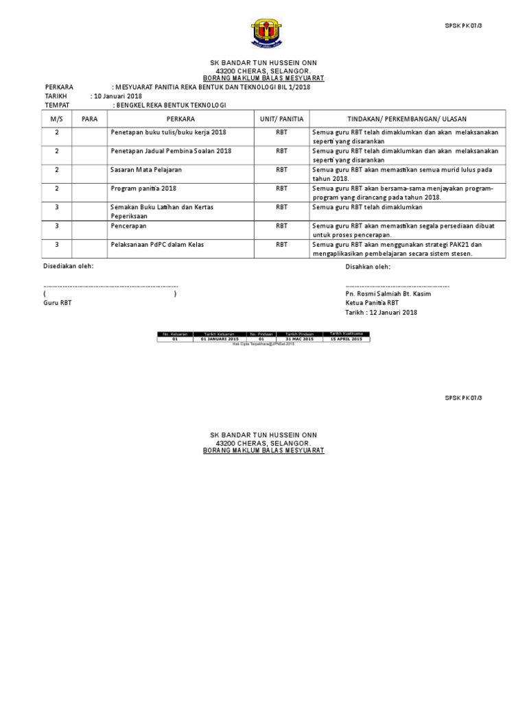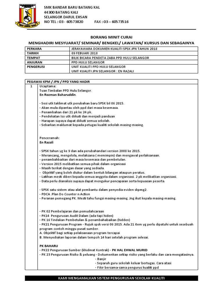 Borang Pk 07 3 Contoh Format Minit Mesyuarat