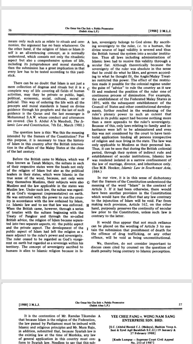 Subscribe subscribed unsubscribe 7. Merujuk kepada kes che omar bin che soh lawan public prosecutor 1988 2 mlj 55 hakim tun mohd salleh abas berpandangan bahawa undang undang yang masih terpakai di negara ini adalah undang undang sekular dan tidak menyatakan malaysia sebagai negara sekular bahkan beliau menyatakan sistem undang undang sekular itu boleh diubah. Berhubung kes che omar che soh lawan pendakwaraya pada tahun 1988 mohamed nazri berkata mahkamah agung tidak pernah memutuskan atau mengisytihar negara ini sebagai sebuah negara sekular. If it doesn t go through such procedures such as in the case itself then it is not a law.