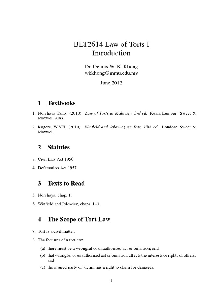 Blt2614 1 Introduction Trespass Tort Free 30 Day Trial Scribd