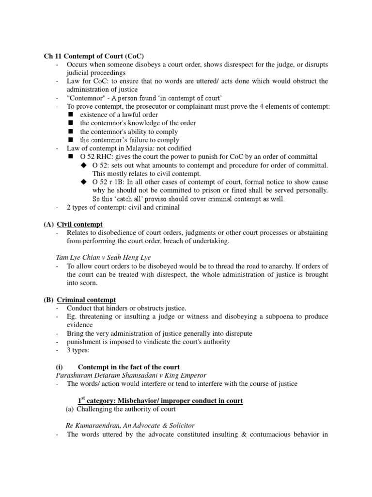 Contempt Of Court Immunity Law Law224 Uitm Studocu