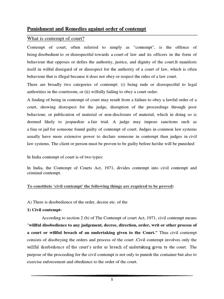 Punishment And Remedies Against Order Of Docx Contempt Of Court Constitutional Law