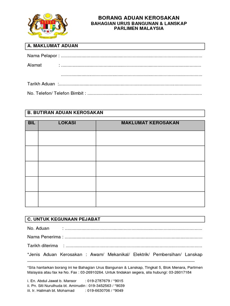 Borang Aduan Kerosakan Aduan Kerosacawangan Teknologi Maklumat Parlimen Malaysia Bangunan Parlimen 50680 Kuala Lumpur Borang Aduan Kerosakan Perkakasan Perisian Komputer Pdf Document