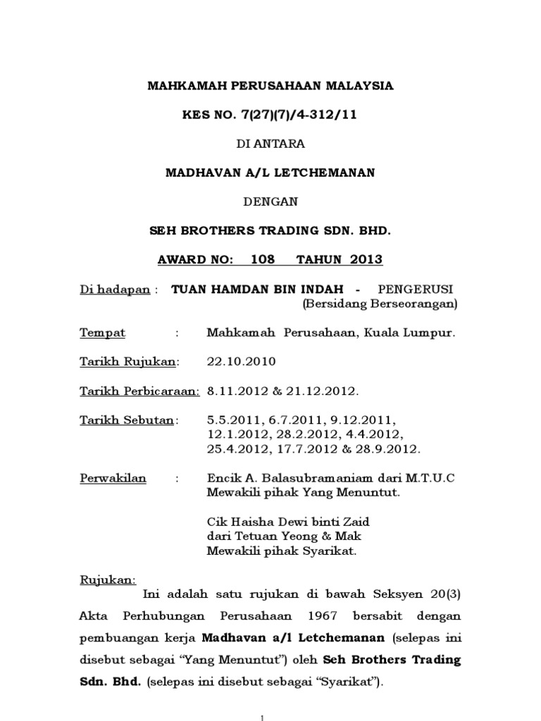 Pdf Award Kes Mahkamah Perusahaan