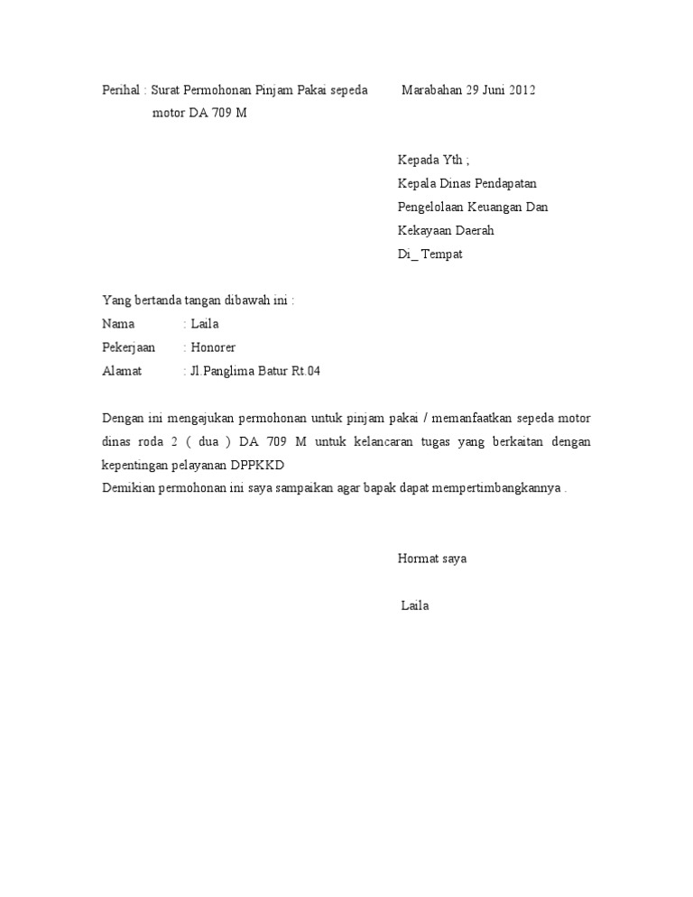 Contoh Surat Permohonan Pinjam Pakai Barang Bukti Motor Contoh Seputar Surat