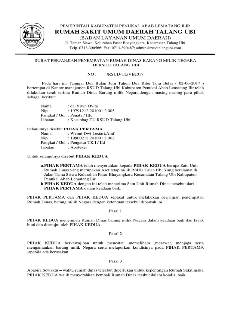 Surat Perjanjian Pinjam Pakai Rumah Dinas Docx