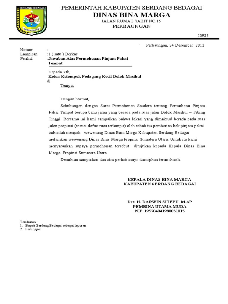 Contoh Surat Pinjam Pakai Barang Milik Daerah
