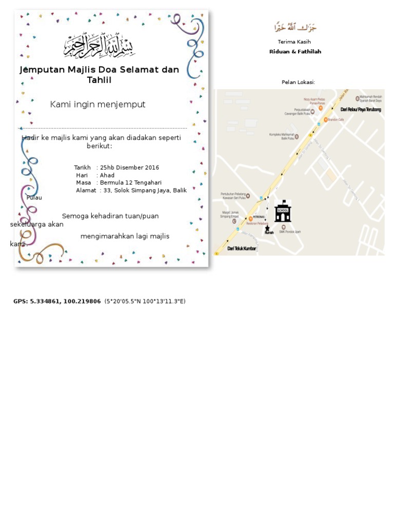 Jemputan Majlis Doa Selamat Dan Tahlil Docx