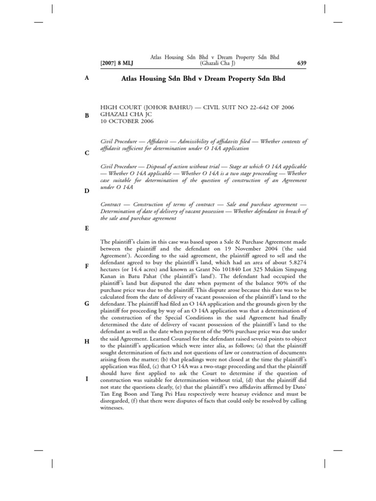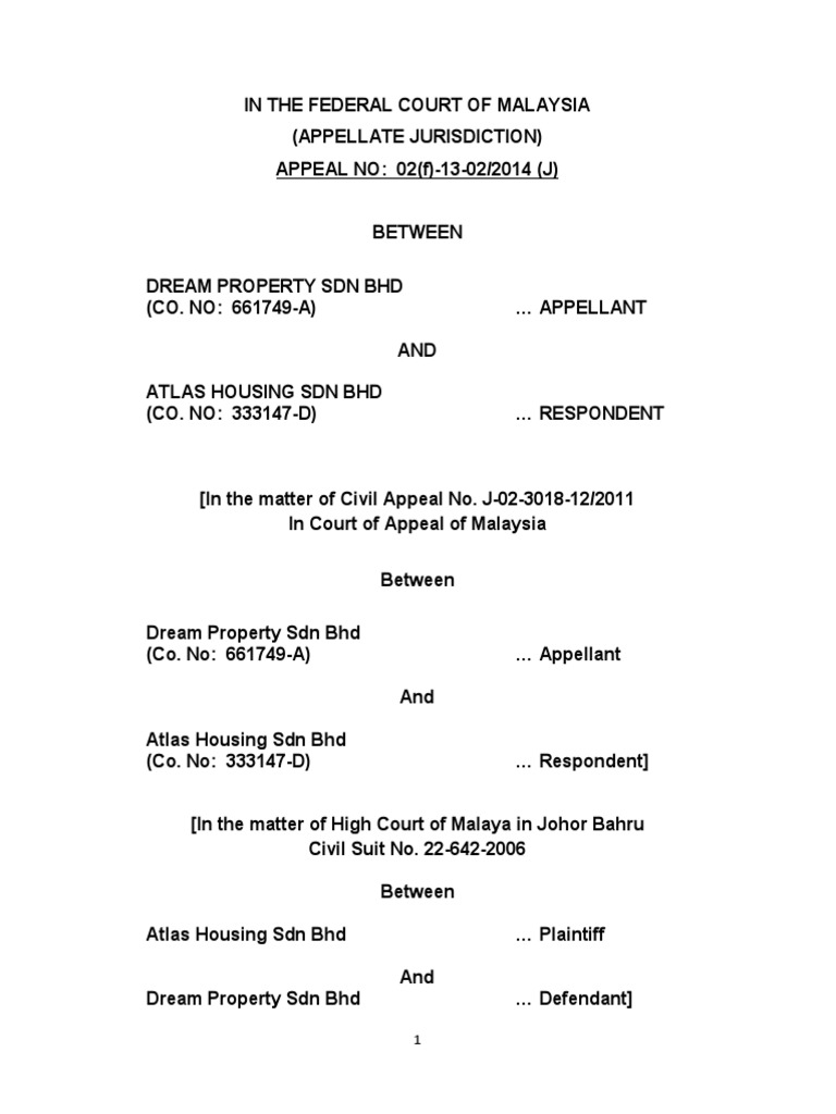 Atlas Housing Sdn Bhd V Dream Property Sdn B Affidavit Pleading