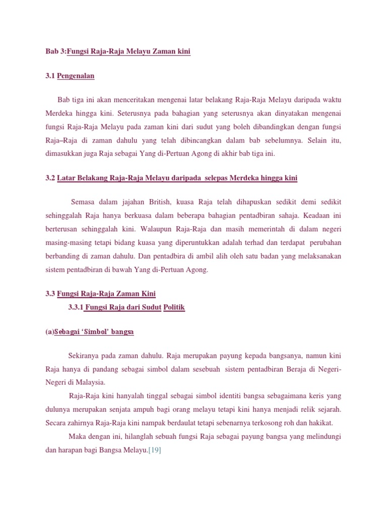 Bab 3 Fungsi Raja Raja Melayu Zaman Kini
