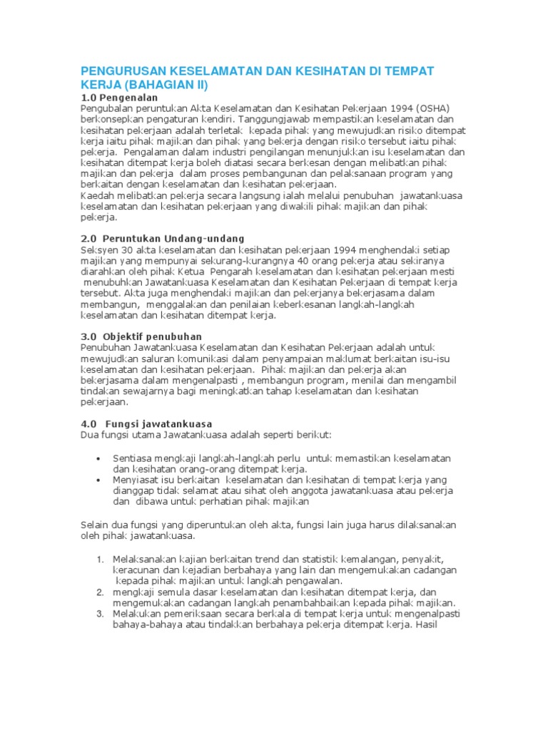 Pengurusan Keselamatan Dan Kesihatan Di Tempat Kerja Docx
