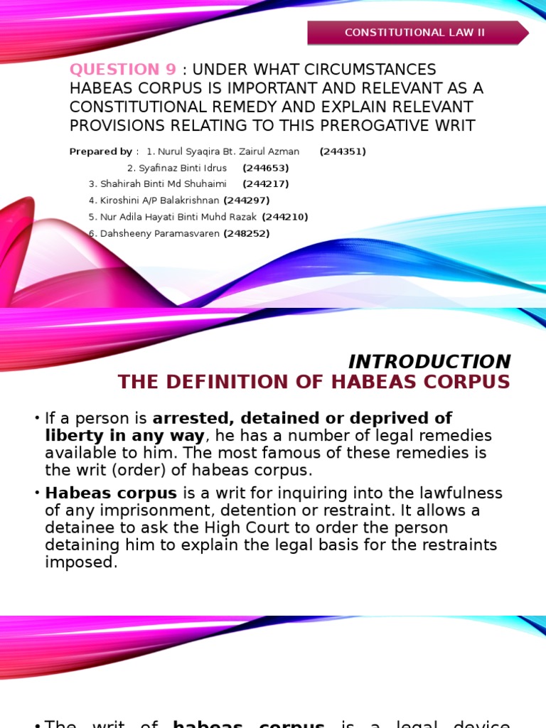 Hebeas Corpus In Malaysia Habeas Corpus Constitutional Law
