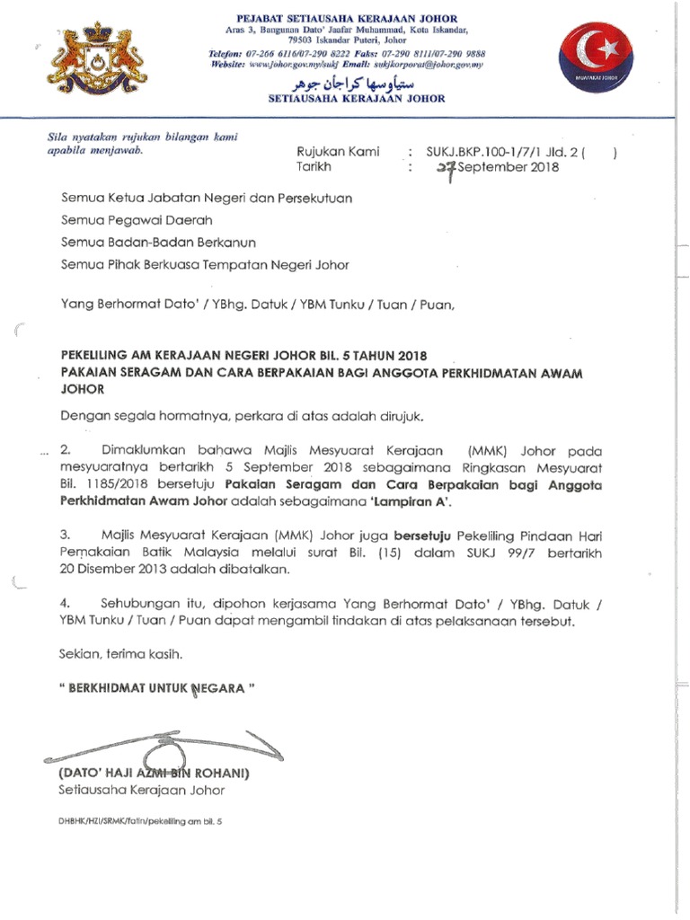 Aturan Pakaian Bagi Penjawat Awam Negeri Pejabat Setiausaha Kerajaan Johor Facebook