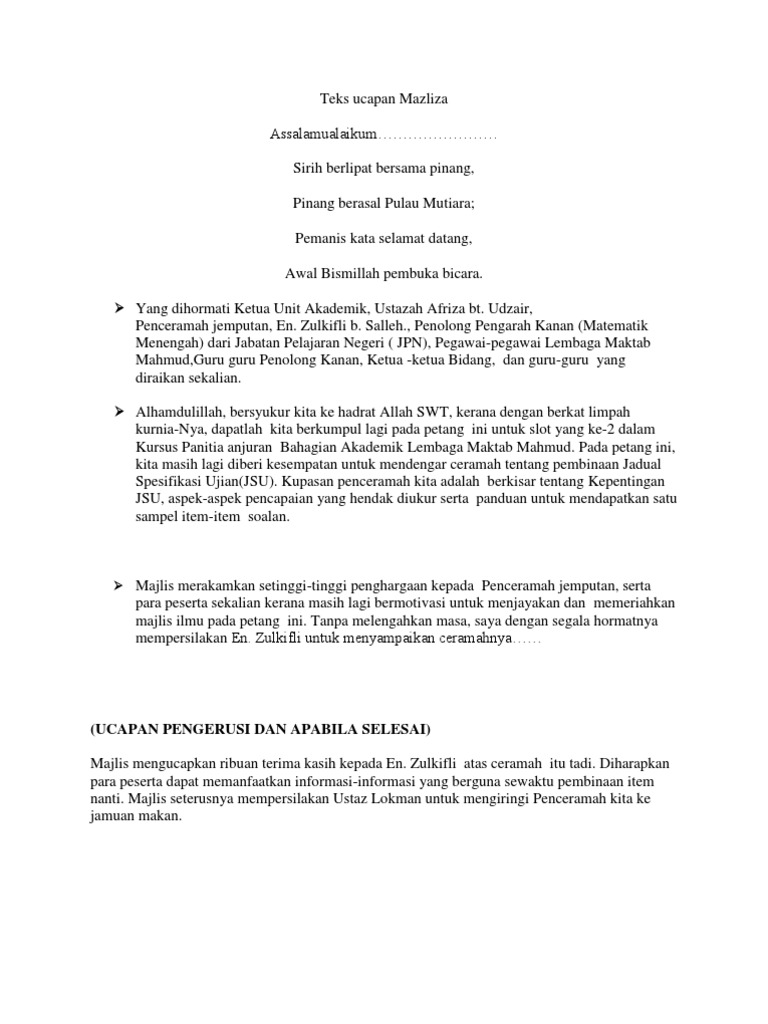 Doc Ucapan Selamat Datang Dan Ribuan Terima Kasih Diucapkan Kerana Sudi Meluangkan Masa Menghadirkan Diri Dalam Program Ini Docx Pei Lian Tan Academia Edu