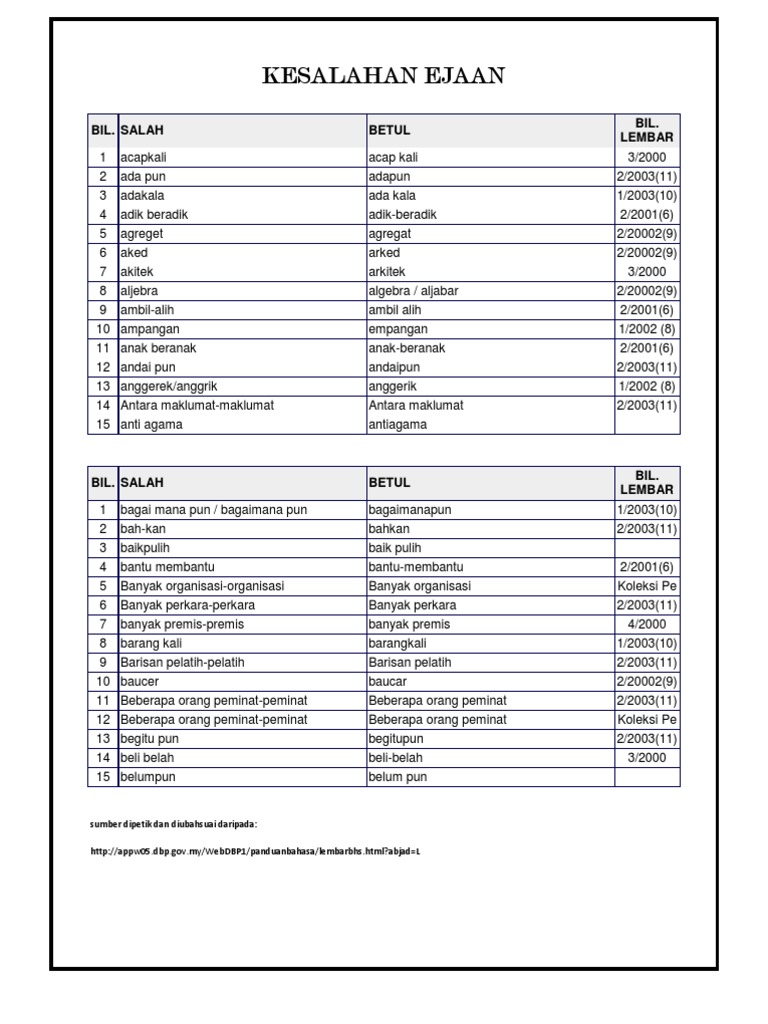 72 Perkataan Bahasa Melayu Yang Sering Disalah Eja Berserta Pembetulannya